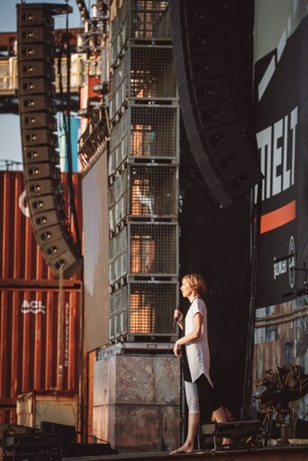 Derartige Einblicke ins private Leben kommen aber auf Dauer für Hundreds nicht in Frage. Man habe eben nicht immer etwas zu sagen, und sobald etwas inszeniert werden müsse, mache es doch keinen Sinn mehr, findet Eva. Im Mittelpunkt von Hundreds stehen die Musik und die Live-Shows. Und dabei gehe es auch um eine explizite Stimmung, die das Publikum umgeben soll, wenn es den Konzertsaal verlässt. „Du bist irgendwie melancholisch, euphorisiert, irgendwie auch traurig, einfach alles auf einmal! Und dann fährst du auf dem Tempelhofer Feld einer großen untergehenden Sonne entgegen. So ungefähr ist die Stimmung, die wir erzeugen möchten.“
